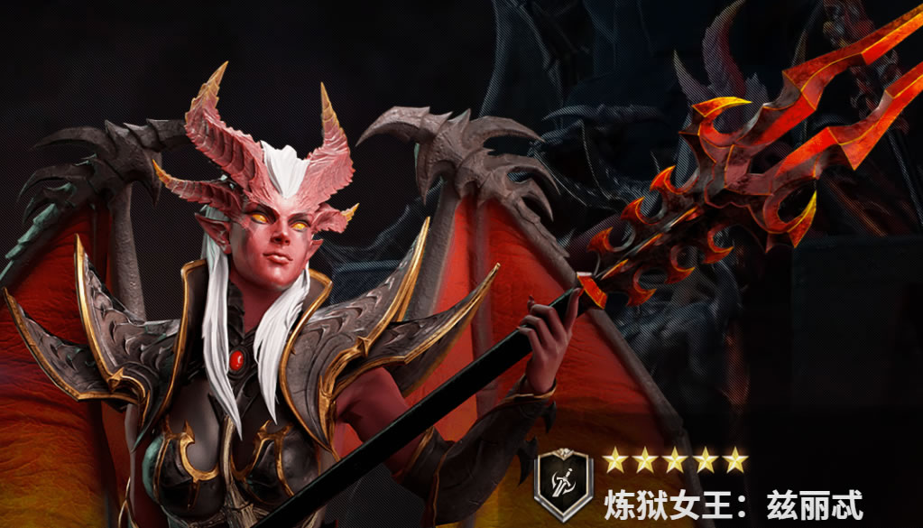 炼狱女王兹丽特来自地狱,巨大的翅膀宣示着她来自魔族;她手执致命双尖抢,不但能对生命饱满的敌人一击就造成巨大的创伤,还可以通过火焰产生持续灼烧伤害。
