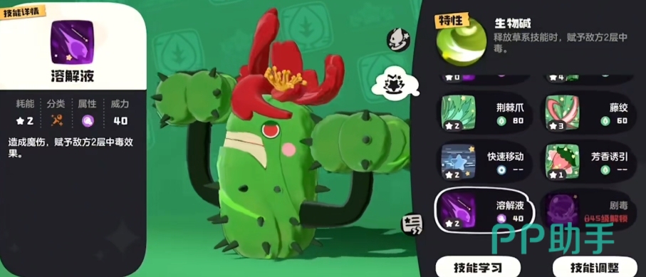 翡翠水母的技能目前来看,主要是以毒系和水系为主,具有多种不同的效果,如中毒、混乱和降低对手属性等都只是其中之一,其技能方面的组合让得它能够在战斗中更加的灵活,适应多种不同的战斗环境,大家到时候可去根据自身的需要来进行选择,此外它非常适合在水或者是毒系的队伍中进行使用哦,如此也能让它的效果最大化。