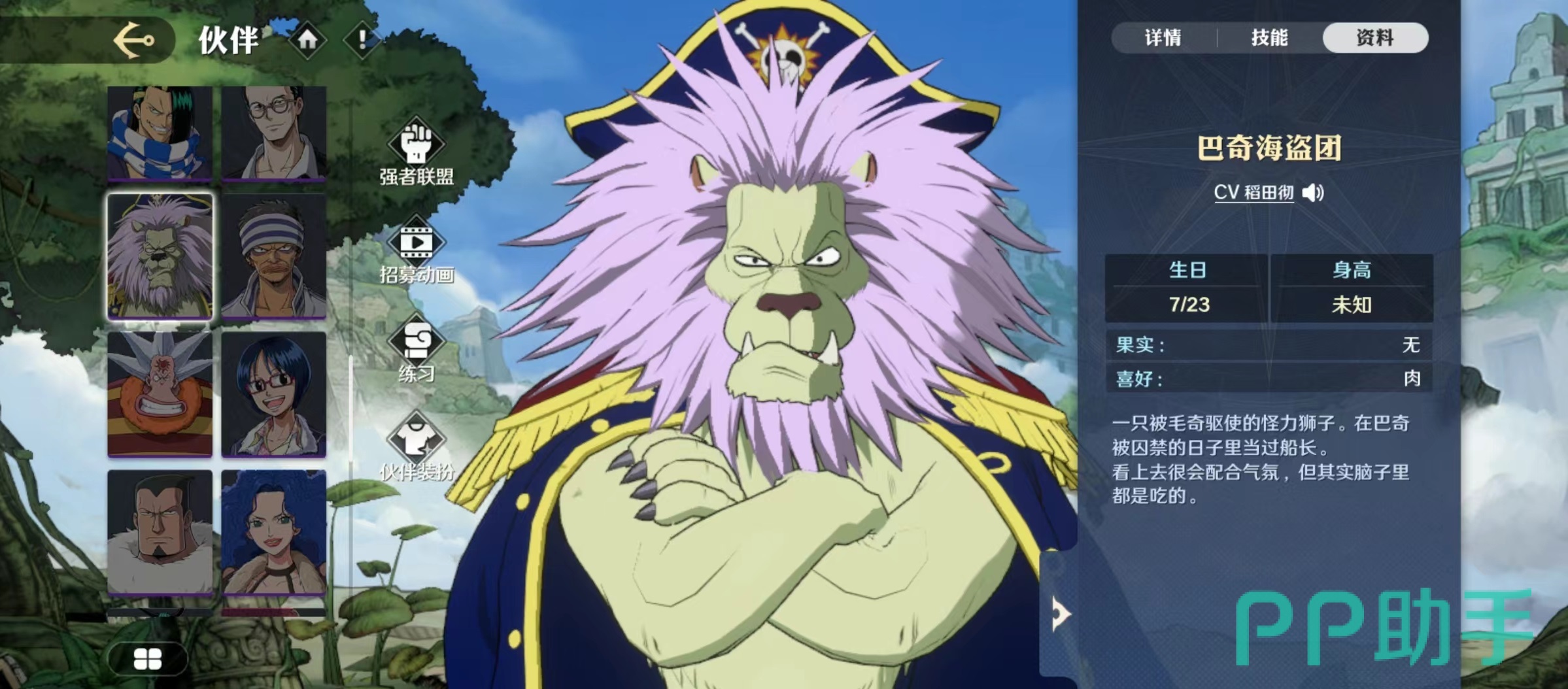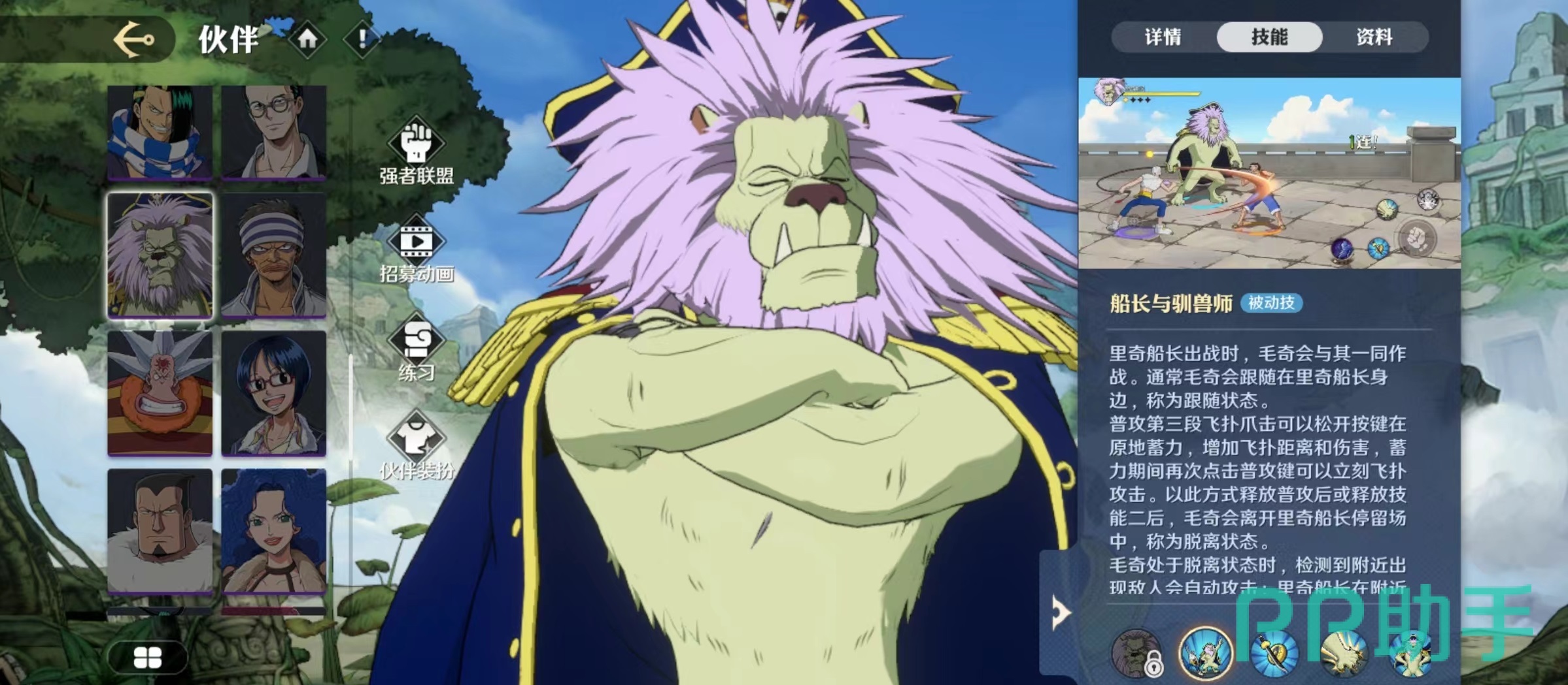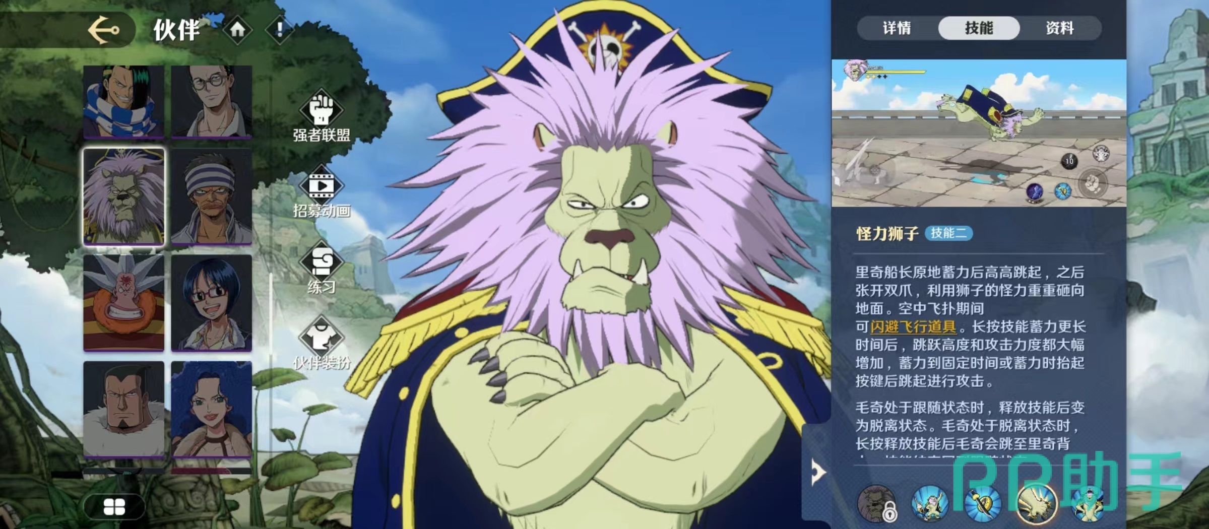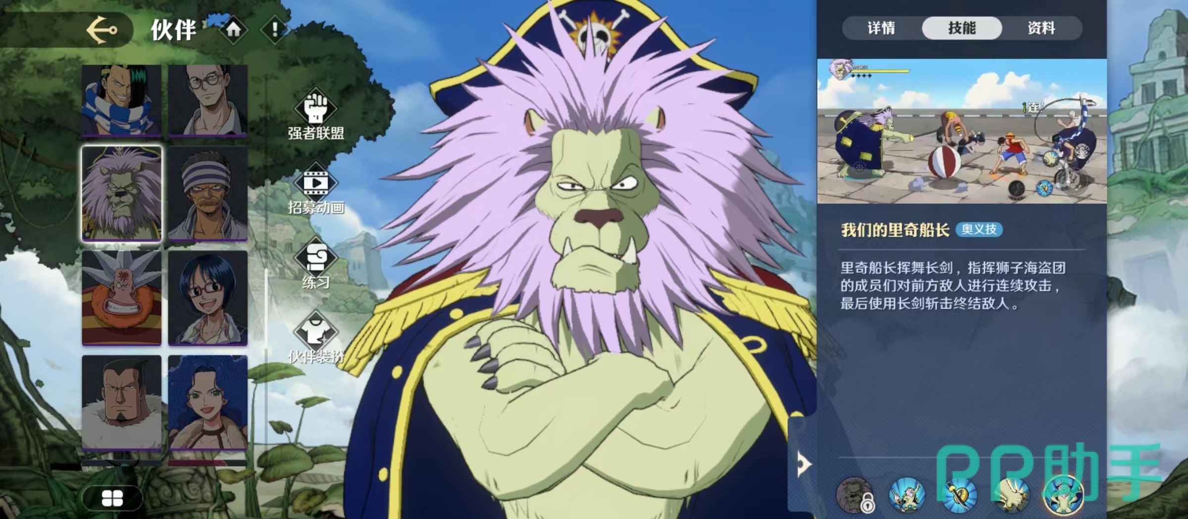 在航海王中很多人物都根据自己的形象有了贴切的外号,狮子就是大家所熟悉的人物形象,今天小编讲一下航海王壮志雄心狮子怎么样。狮子在航海王壮志雄心中的名称是里奇船长,是巴奇海盗团的代理船长,自身外形就是一头非常凶猛的狮子,所以才有了这样的名称,他在战斗中也是非常凶猛的人物,具体技能效果一起往下看。