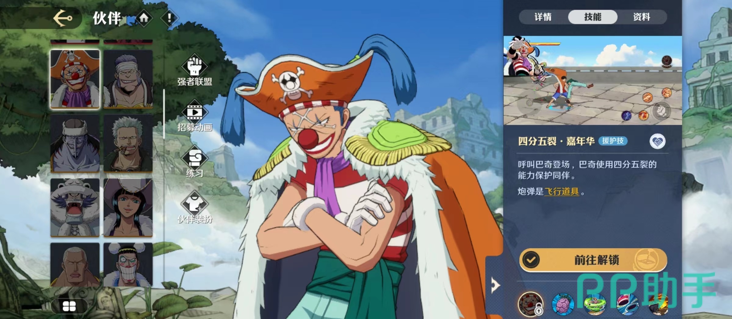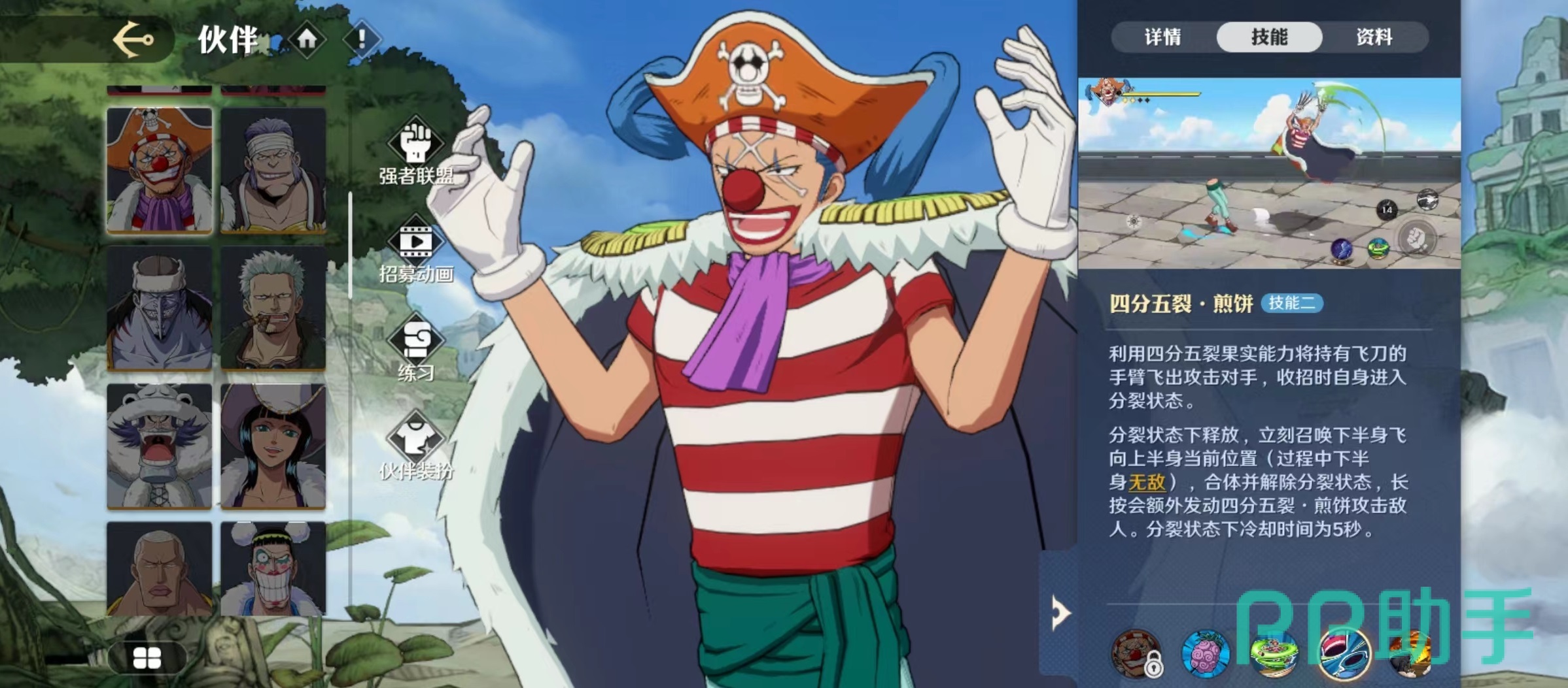 在航海王系列作品中,有很多个性鲜明的角色,小丑巴奇就是给大家留下了很深印象的人物,现在也出现在了航海王壮志雄心中,大家可以使用它来进行战斗,所以一定要了解清楚航海王壮志雄心小丑技能有哪些。对于这一类格斗游戏来说,角色的技能效果和使用技巧是最重要的内容,一定要掌握。