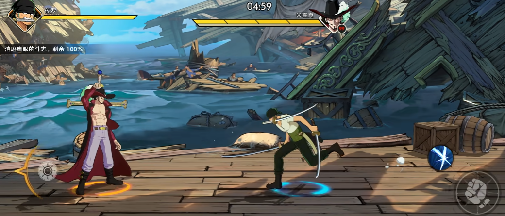 这是一段专属于佐罗与鹰眼的剧情故事,他们彼此在海上餐厅邂逅。在这里鹰眼挥舞出来的几道剑气已经摧毁了船只,当然佐罗的梦想便是成为世界第一大剑豪。面对如今的世界第一剑豪—鹰眼。