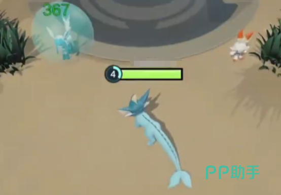 之后是它的一技能,该技能的效果为扑向敌方宝可梦,然后将其扔到后方,这是一个典型的控制类技能,可以点控一名敌方单位。它的第二个技能的效果为潜入到水中,然后指定区域跃出水面,在跃出水面后会对范围内的敌方宝可梦造成伤害。