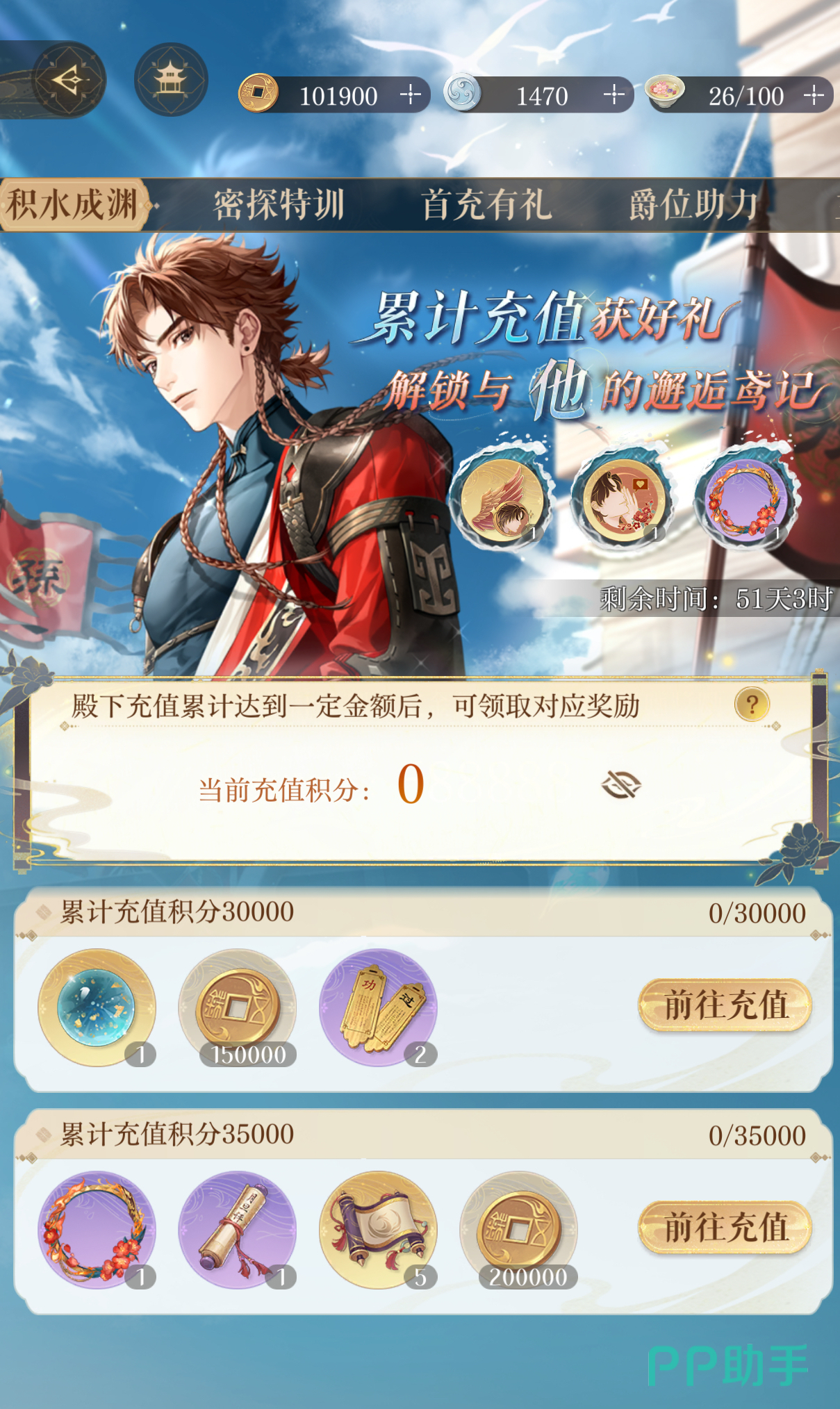 此外,充值也能获取少量的装金玻璃。在购买密探特训升到30级特训证,有装金玻璃奖励一个。积水成渊的累冲活动中,充值累计充值积分3万,有装金玻璃奖励一个。