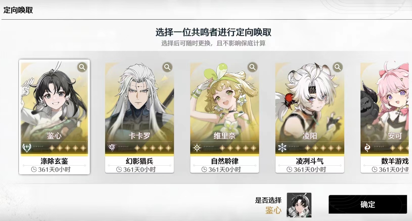 目前在鸣潮中的常驻五星角色分别是维里奈、凌阳、鉴心、安可和卡卡罗,大家只需要获得五星角色时就可以在上述中任选一个,而且活动是常驻开放。这项活动对于新手来说非常友好,直接给大家组建队伍带来了核心。至于如何去选择,大家可以根据自身的情况来定,如果没有合适的选项,那么小编比较推荐大家去选择维里奈,接下来还可以选择安可、卡卡罗或者是凌阳,鉴心在当前版本中并不推荐选择。