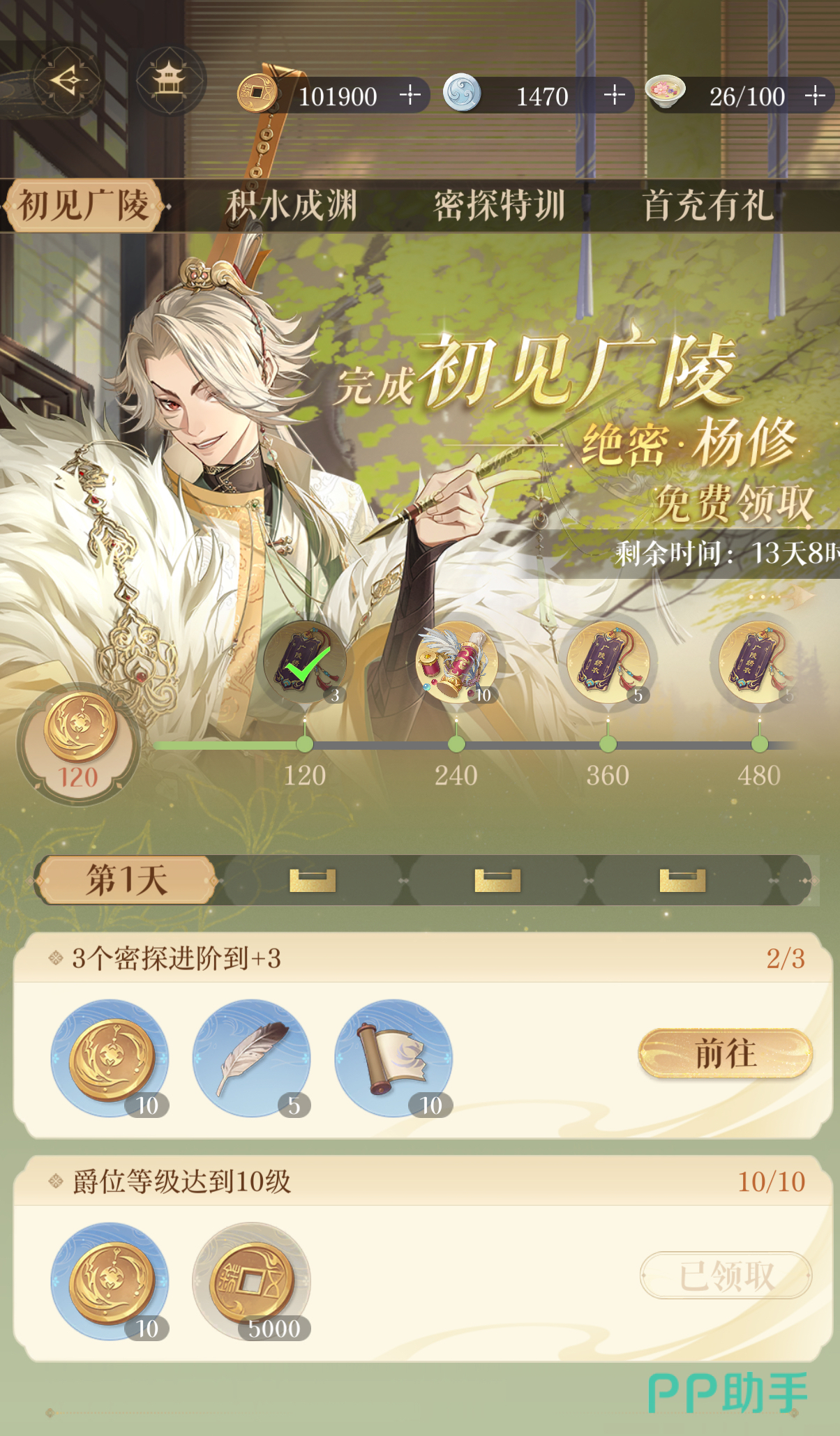 不少新手玩家靠着卡池10连就出的鲁肃劝退神器,通关大部分的主线,而且新手玩家做7天的初见广陵,还能免费拿金色稀有度单体输出的杨修。