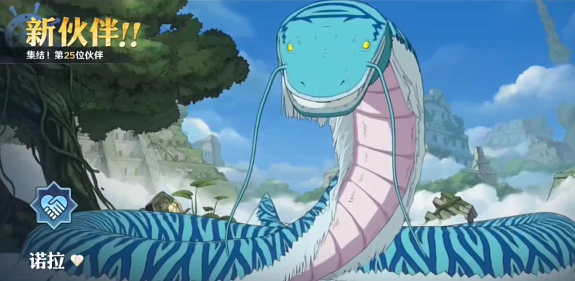 大蛇的名字叫做诺拉,只需要在商城中找到伙伴商店就可以买到大蛇诺拉了,不过需要花费九百八十个钻石哦,大蛇诺拉是需要占用两个援护槽位的,不过因为它的技能十分强大,能够对敌人造成非常恐怖的伤害,所以就算占用两个援护槽位也非常合理。