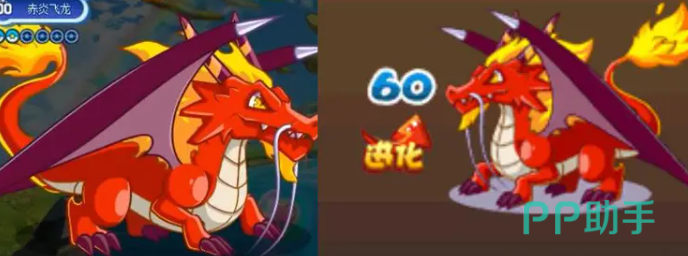 后期进化之后就会变成赤焰飞龙,变得更加的可怕。身上的火焰更加的浓郁,而且翅膀也会逐渐的增加。第1个技能是火焰护罩,虽然会让玩家在进入到下一个回合时不能够行动,但却可以免疫伤害,而且还有反伤伤害。