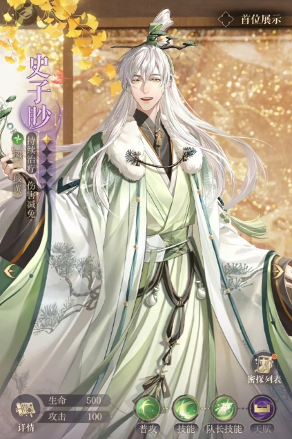 史子眇是如鸢中的一位风属性的岐黄角色,这类角色在效果上类似于大家熟悉的奶妈,如果大家不知道怎么用他的话,本期如鸢史子眇密探介绍的内容大家就可以一起来查看,其实史子眇他自身带来的优势包括伤害减免和持续治疗的效果,所以是非常适合大家在前期用来回血的。