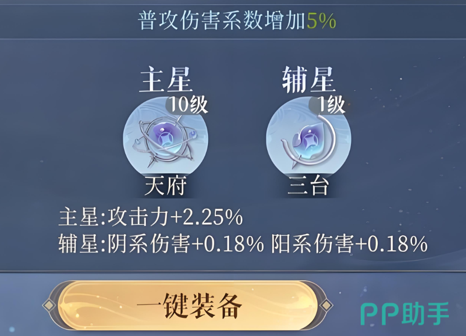 杨修这个角色本身的定位机制比较复杂,既是单体输出也是辅助类的输出。杨修在辅星的选择上面,小编优先推荐的是三台。三台装配上之后主要是对阴阳属性的密探提高属性伤害,而杨修刚好是阳属性密探这一类星石搭配,从而提高攻击力。