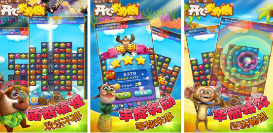 专为小朋友推出的益智游戏,有小朋友非常喜欢的熊熊元素作为呆萌休闲益智手游,有机智的熊大,呆萌的熊二玩家将在众多关卡当中不断消除,游戏规则较为简单,体验时很容易上手,玩家只要将三个颜色相同的动物头像连成一排就能快速消除,其中加入联网以及单机两种不同模式,在联网模式中可以参与全球比赛中。