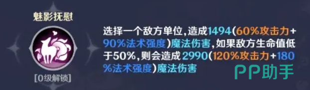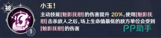 第二个被动效果则让“魅影抚慰”的伤害提升20%,并且在击杀敌人后,自动对场上生命值最低的敌方单位造成伤害。这种自动锁定低血量目标的能力,让小玉能够在战场上形成一股无法抵挡的收割旋风,为整个队伍带来压倒性胜利。