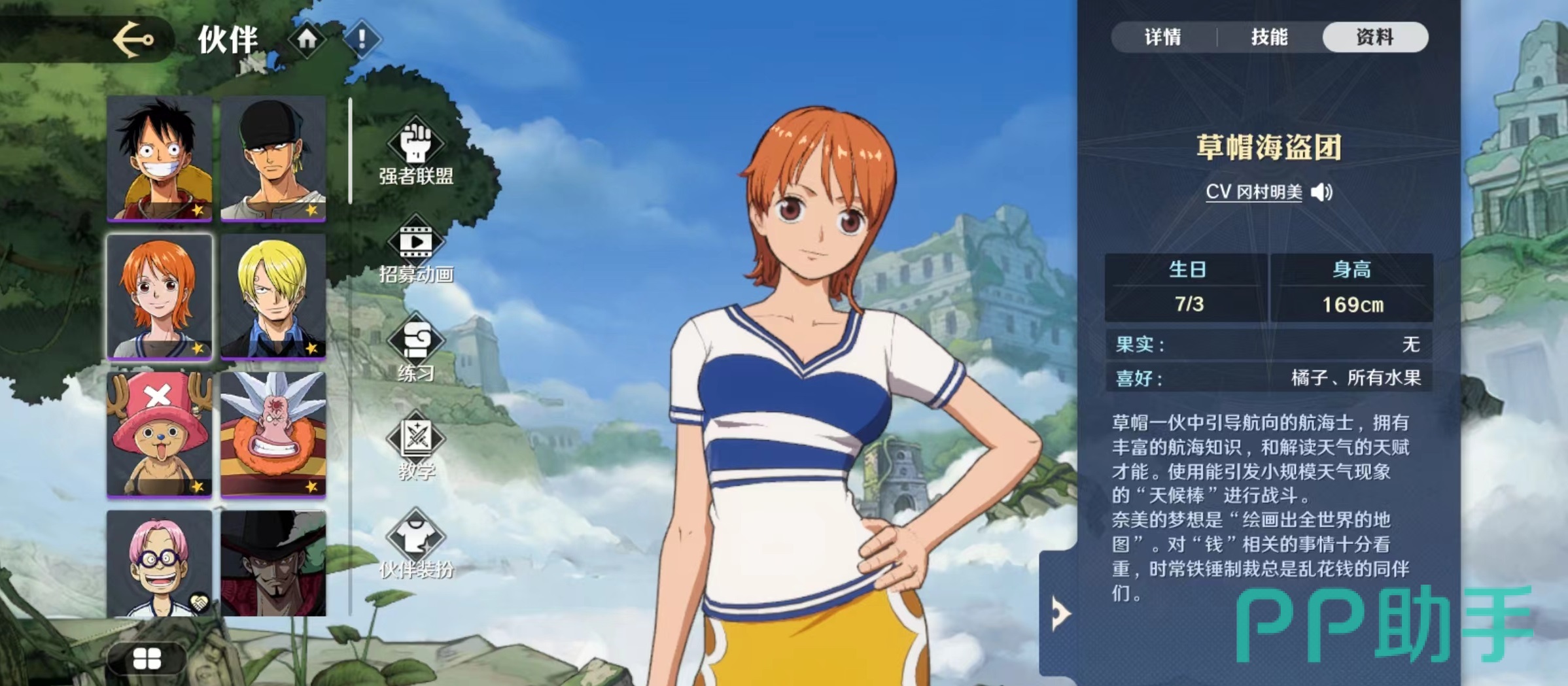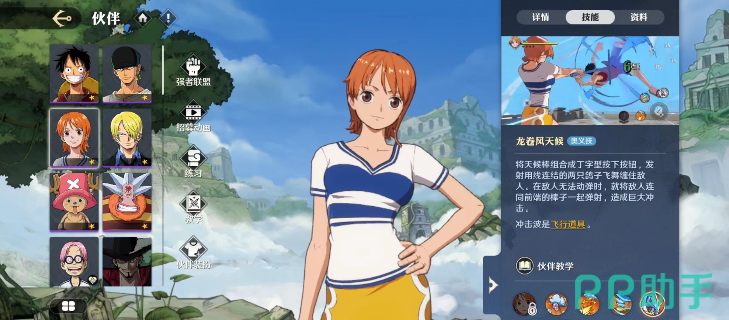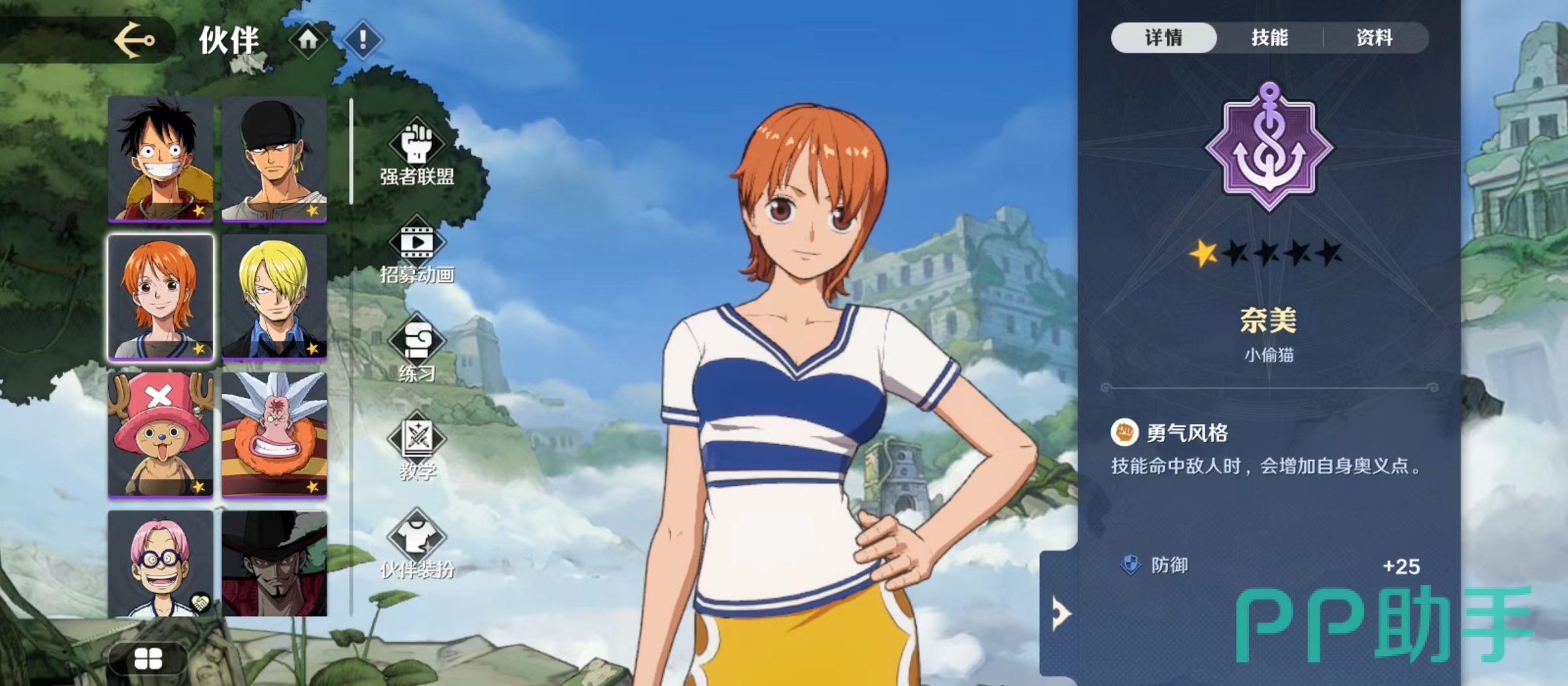 小编今天要来给大家介绍的是航海王壮志雄心娜美怎么样,娜美是航海王州大家非常熟悉的角色之一,但是因为航海王作品翻译的缘故,该人物的名称有了很多变动,大家熟悉的娜美在航海王壮志雄心中被更名成了奈美。如果是对航海王非常熟悉的玩家,看技能和形象就会非常清楚。