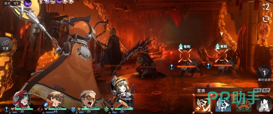 作为回合战斗战斗游戏,玩家最多可上场4名角色,角色可去使用普攻、小技能和大招等,其中普攻回复能量,技能和大招则是消耗能量,而在战斗开始前需要安排角色进行站位,角色只能攻击到自己正前方或者是斜前方的敌人。此外,游戏还存在属性克制以及增益和减益buff等机制的设定,这个是大家所需要注意的。