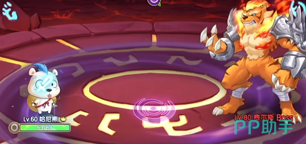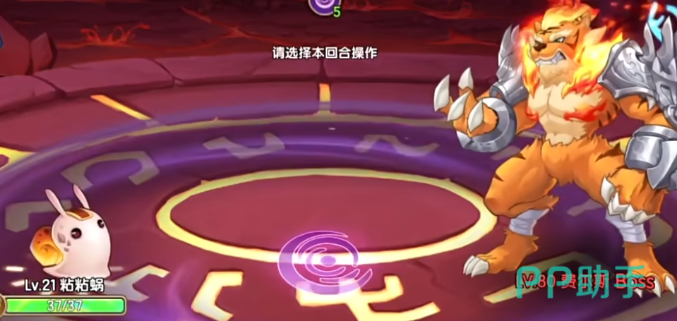 在攻略它的时候第一步需要让粘粘蜗上场,然后使用引力防御技能配合自身的降属性技能去降低其防御,之后需要上哈尼熊,让哈尼熊上场去放仪式技能,之后连续放4-5次,在放完后换最后一只水系精灵上场。