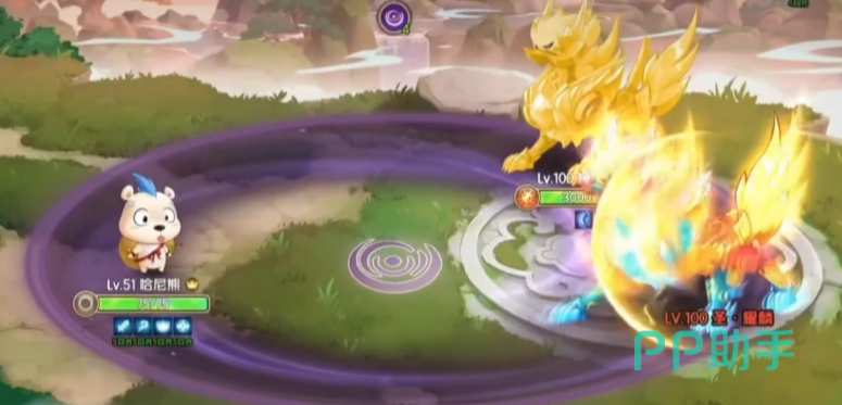 之后宝石蜗需要在场上吃第一轮伤害,然后给干扰放出来,之后换哈尼熊上场,在上场后需要放仪式加驻守这两个技能,然后退场之后这样循环使用所有哈尼熊,用完后就可以换最后一只精灵上场了。