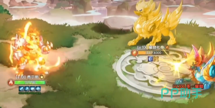 该精灵就是主战精灵,在它上场之后会获得哈尼熊的仪式效果,自身的全属性差不多会翻15倍,这个倍率下属性还克制该boss,在这种情况下就可以顶着伤害单人击杀boss和它的分身了。