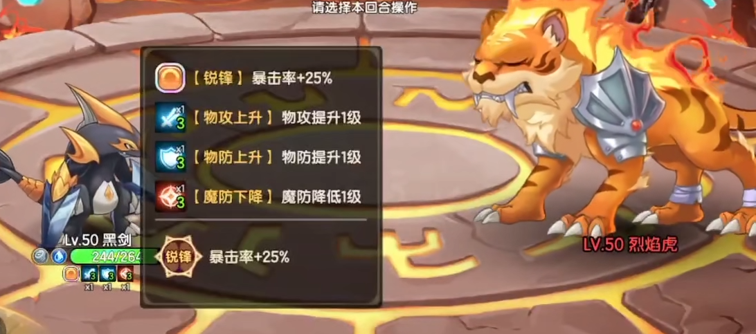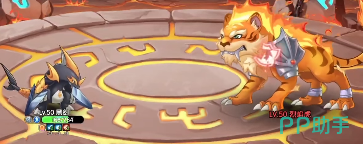 在最后的时候需要上场的精灵需要是一起水属性的精灵,等级最好在50级以上,在BUFF的叠加下本身的能力有了很大的提升,之后使用水属性的技能进行攻击,几回合下来基本上便可以将老虎击败。
