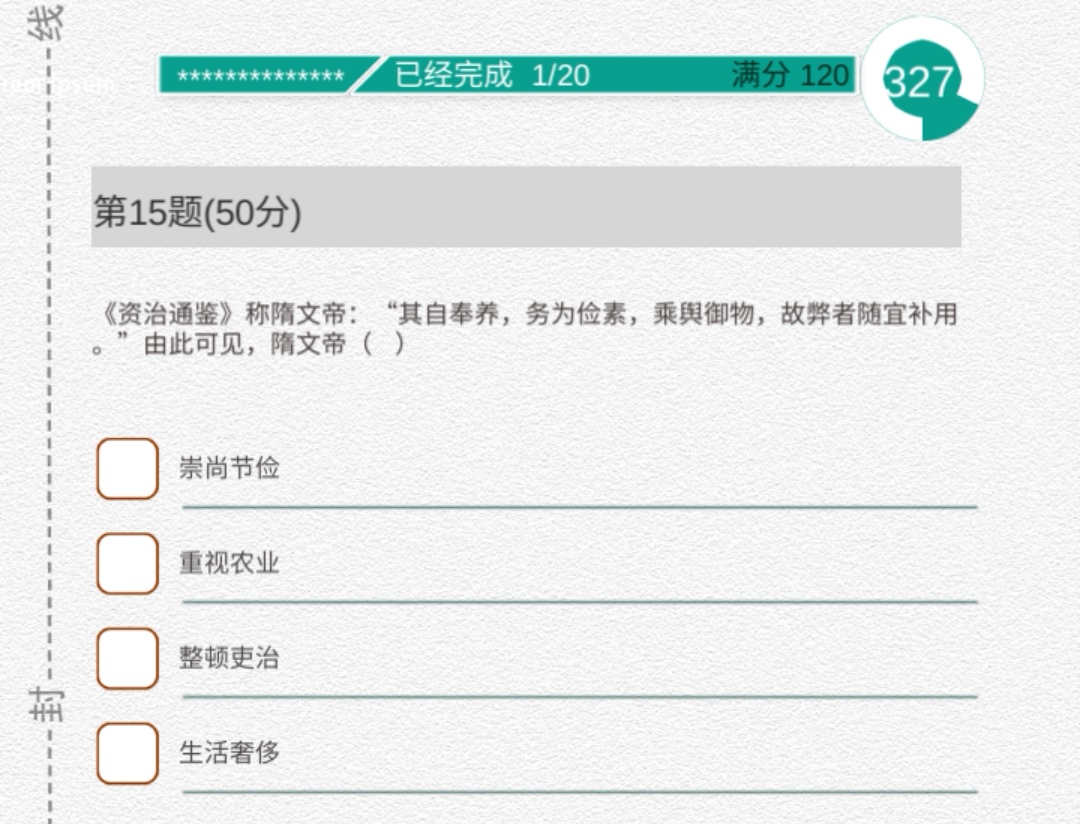 【15】《资治通鉴》称隋文帝:“其自奉养,务为俭素,乘舆御物,故弊者随宜补用。”由此可见,隋文帝( )