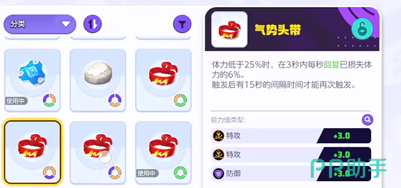 气势头带的作用是体力低于25%的时候,在3秒内每秒恢复已损失体力的6%,这个恢复是没有次数限制的,只不过触发后需要间隔15秒才能再次触发,这个持有物能让喷火龙的容错率更高,从而持续性的进行战斗。