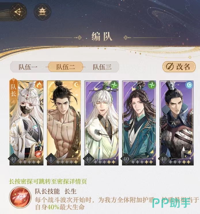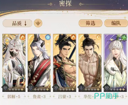 陈登+史子眇+颜良+郭解+华佗这套阵容是小编推荐的话,第1套阵容,不过这套阵容的组建需要玩家注意,华佗的命盘洗练必须是技能效果变为敌人造成三次攻击力伤害,这样的话,华佗就可以作为输出来进行战斗。