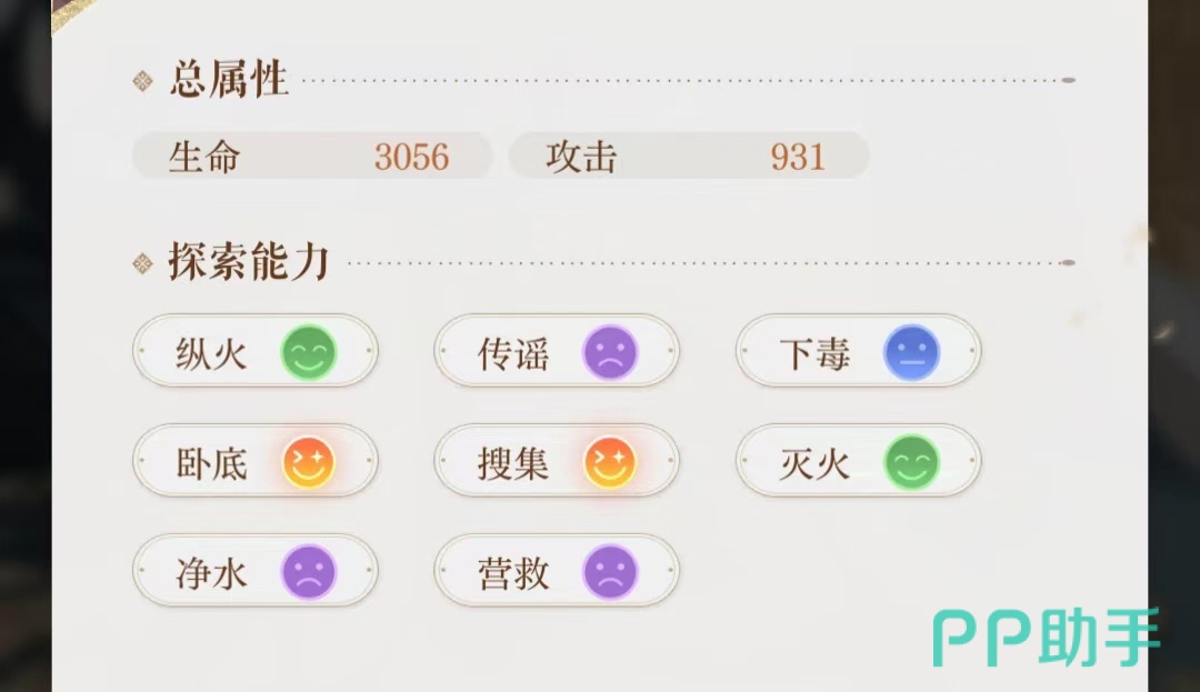 在探索玩法中,文丑在卧底、搜集、纵火、灭火的能力中有着不俗的附加奖励表现,殿下们可以在这些事件中,优先选择文丑密探进行探索,同时,如果在下毒事件中,没有充足的密探可以进行探索,也可以上阵文丑密探,虽然不能附加高额的奖励增幅,但也能起到一定的增幅效果,可以作为备用密探进行选择。