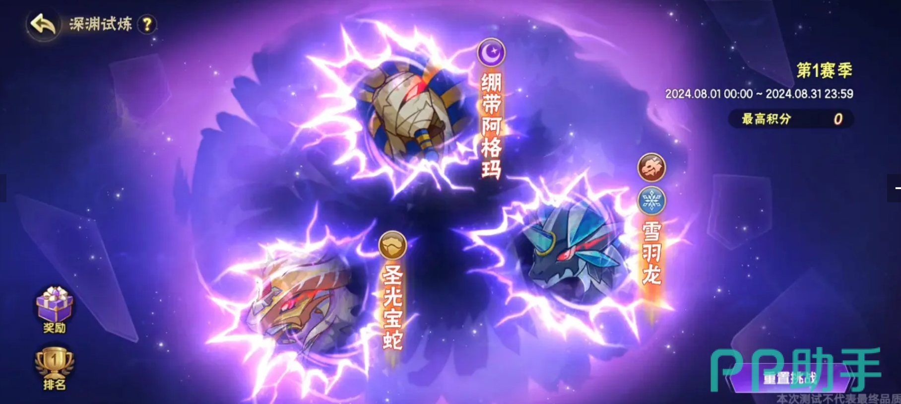 如果在挑战过程中遇到困难,不必担心,玩家可以选择“重置挑战”功能来重新分配精灵阵容,但要注意的是,重置后挑战记录将被清空,只有排名积分会被保留。因此,除非是万不得已,不建议频繁使用这个功能。除此之外,玩家每个赛季结束后,还将根据试炼总积分获得赛季奖励,积分越高,奖励越丰厚。