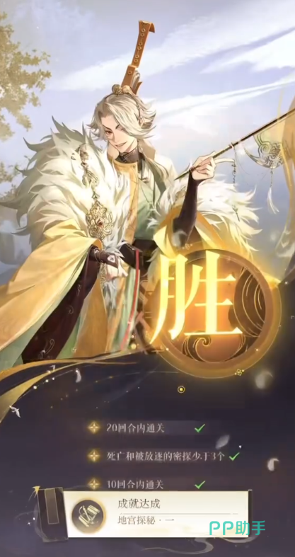 地宫第10层的挑战目标有三个,分别是20回合内通关、死亡与被放逐的密探少于三位、十回合内通关,新手自然能通关就行,有高修为密探的玩家可以争取满星过关,累积挑战目标星级可以兑换古玉奖励。