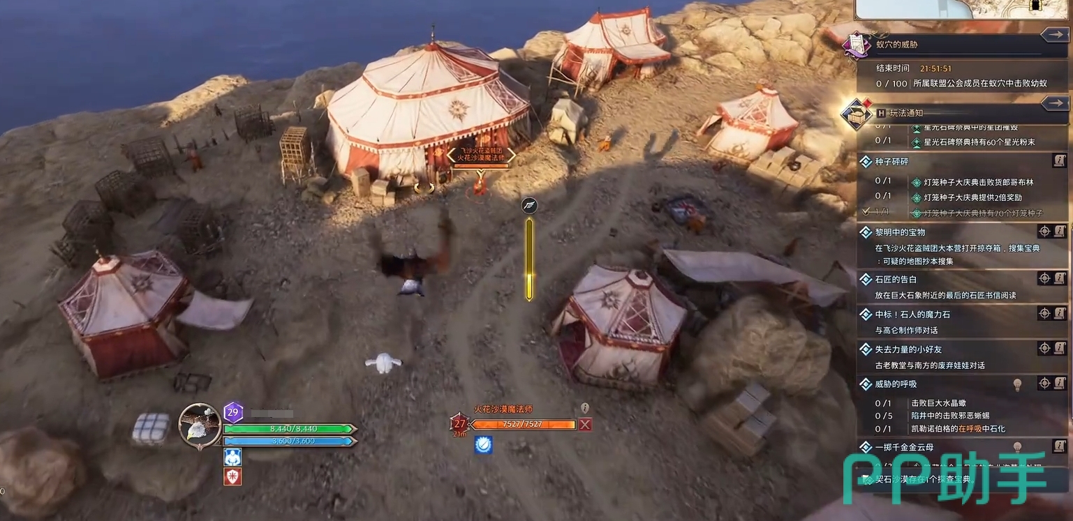 这个任务分为多个部分,第一部分任务要接取的话可以打开地图找到“骆驼交易所”这个传送点,之后找到充满不满的商人对话然后查看抵抗军公告栏,查看完后去格林威尔村调查石像,最后击败这里飞沙火花盗贼团的敌人,并跟誓约体对话即可。