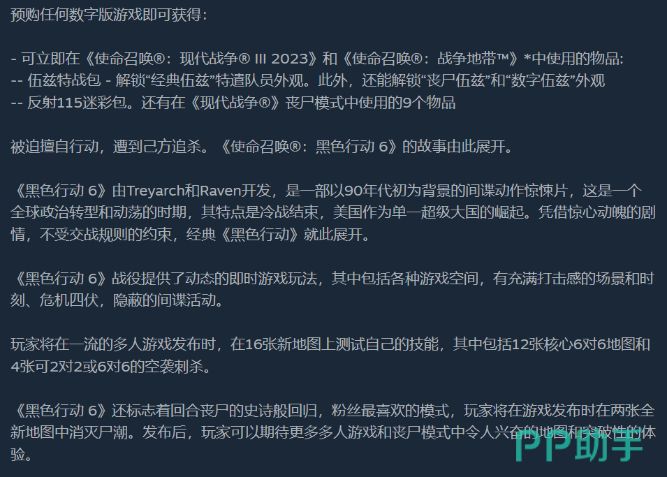 使命召唤21黑色行动6不仅继承了前作的优点,还在玩法、多人对战模式、武器系统等方面进行了全面升级和创新。虽然公测已经结束,但游戏的正式发售即将来临。如果你是一位热爱射击游戏的玩家,不妨一起期待一下吧!