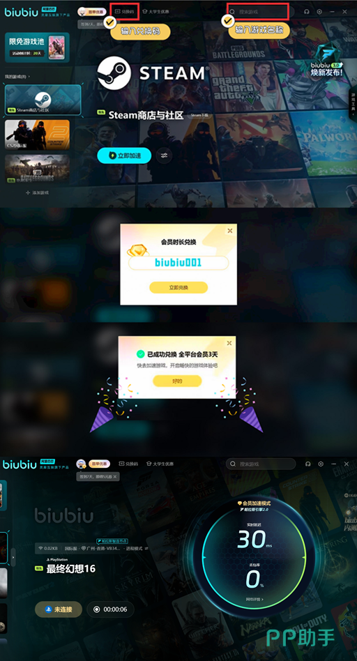 可以说最终幻想16不仅继承了系列一贯的精美画面与动人剧情,更在战斗系统、角色塑造上进行了全面革新,为玩家带来了前所未有的游戏体验。为了确保流畅地探索这个宏大的奇幻世界,许多玩家选择借助加速器来优化网络环境,这里大家可以试一试biubiu加速器,它的加速能力非常专业而且福利多多,现在去下载体验biubiu,新人直接就能拿到一个24小时的免费体验加速时间,而且小编还会分享一个兑换码大家可以使用——【biubiu001】,兑换之后还能再拿走72小时免费体验加速时间,这样两个福利全部累计我们就能拿到96小时免费加速时间了,让你在最终幻想16的战斗过程中畅通无阻。