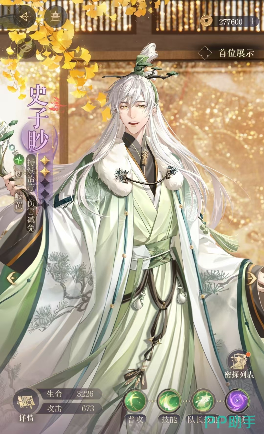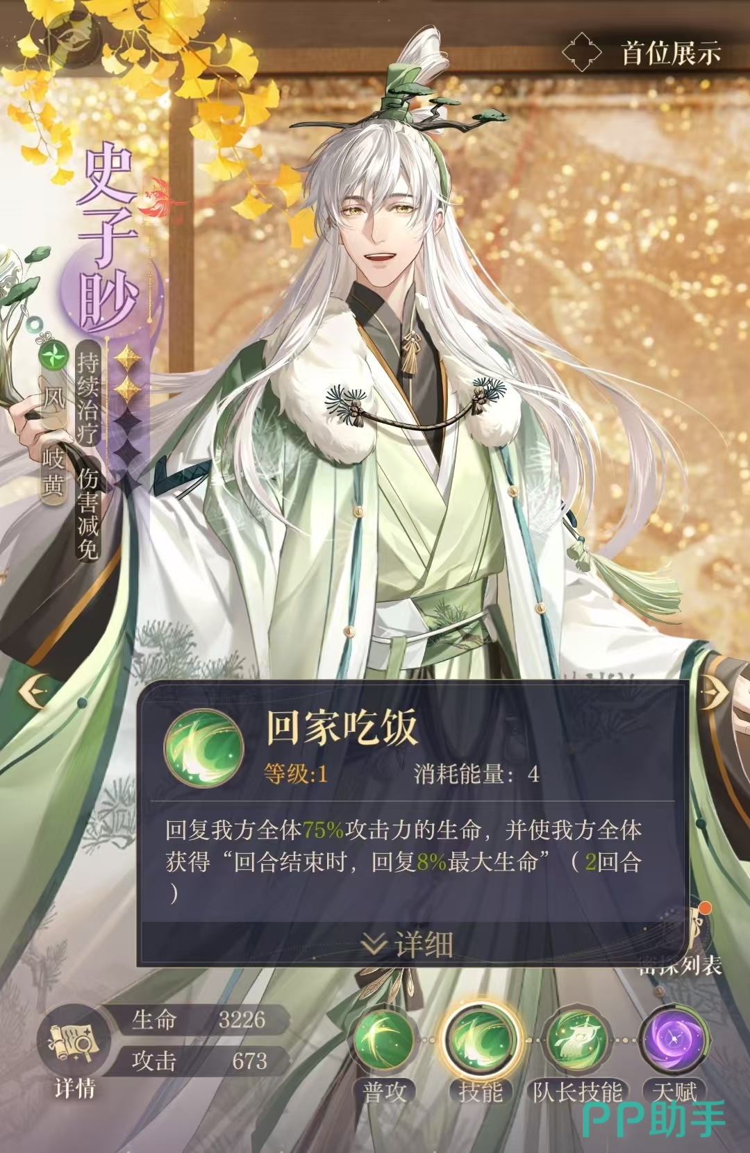 史子眇在游戏中的技能能够恢复全体队员75%的攻击力生命,并且能让队友在回合结束的时候回复8%最大的生命力,该效果能持续两回合。那他为什么拥有伤害减免的机制效果?是因为史子眇队长技能能够让全体队友的免伤值提升12。