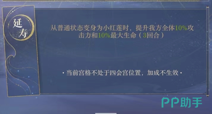 最后一个需要洗练的词条是能量的回复就是当【吕蒙从普通状态变身为小红莲时,能够提升我方全体队友能过提升10%的攻击力以及10%的最大生命值】,在这种情况下,吕蒙的普攻效果伤害会增加,技能效果也会大幅度增加小伙伴们稳赚不亏。