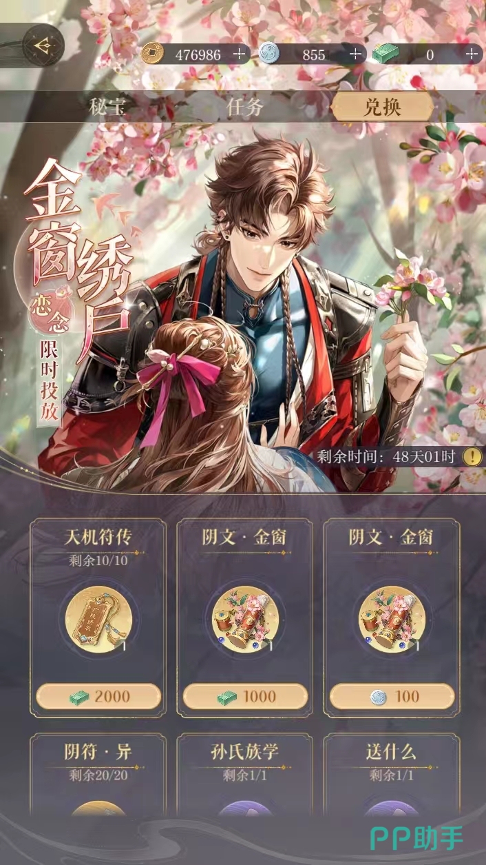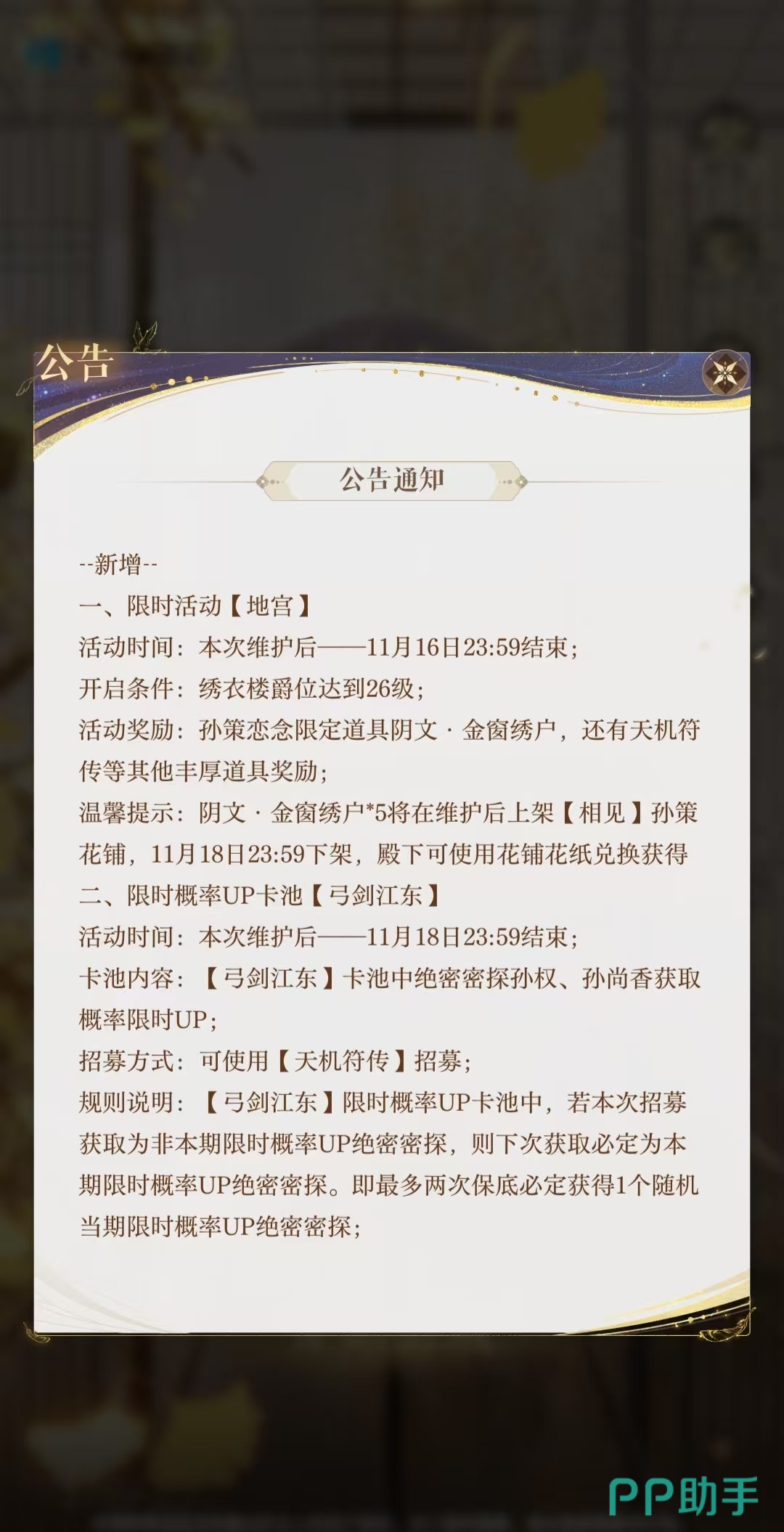 阴符在游戏中进行分解之后,玩家就能获得对应的货币用来进行兑换,在地宫活动中玩家完成挑战,可以在主题活动任务中获取到大量的限时道具。其中包括孙策的心纸、天机符传和孙策限定的阴文金窗。