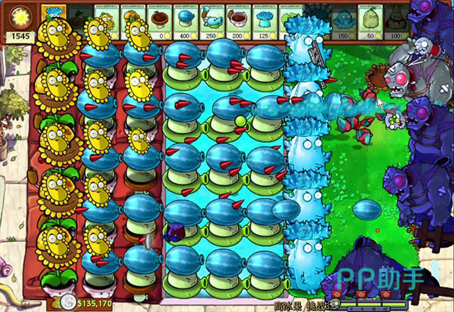 在日常关卡中,玩家使用高冰果和向日葵、弹弹菇、冰瓜大喷菇、仙人掌南瓜等组建阵容,轻松完成整体部署。