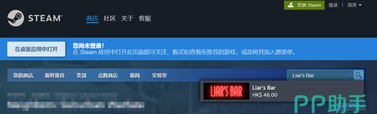 在Steam平台上,骗子酒吧这款游戏的英文名为Liar's Bar。我们可以先打开steam客户端或者网页版,然后在右上角搜索框中复制粘贴,输入这个英文,稍微等待一会,就会出现这个游戏的图标和信息了,之后我们点击它就可以直达下载页面。
