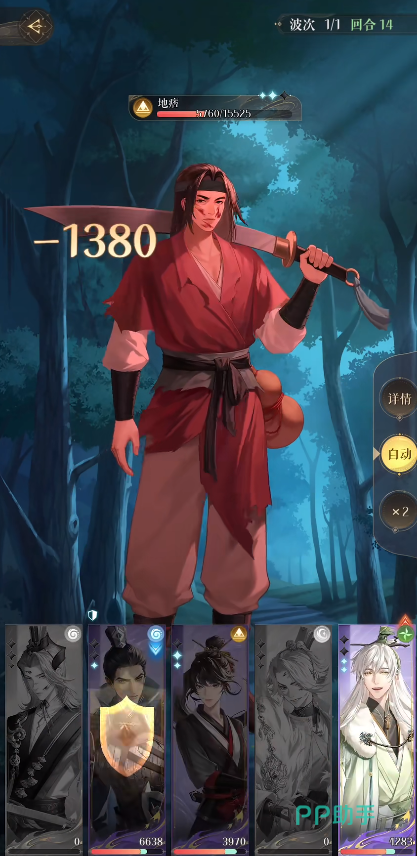 首先第1回合,根据场上的密探属性克制关系选择攻击的顺序。阿蝉与颜良打水属性小兵,鲁肃与杨修打地属性小兵,史子眇不用普攻回血就下拉防御。第2回合,阿蝉打水属性的小兵,剩下的人打地属性的小兵,尽量在这回合压低血量,更好触发鲁肃的劝退。因为鲁肃的技能机制对于血量在30%以下的敌方目标,劝退成功率会翻倍,如果再洗上加15%劝退成功率的命盘,这一个关卡会更好打。
