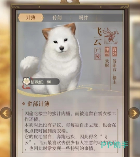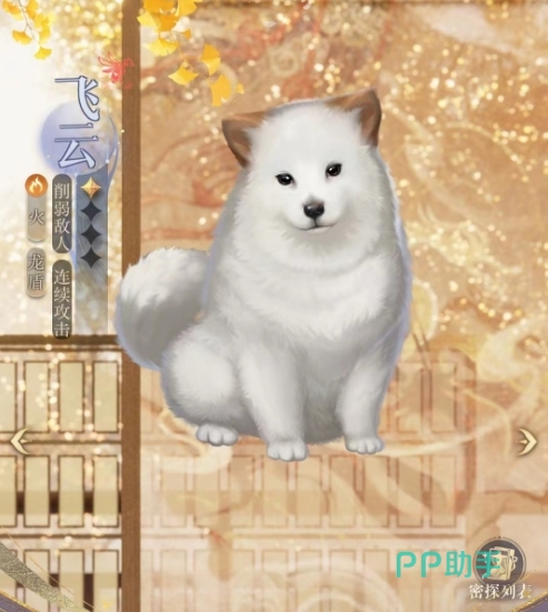 飞云是一个动物狗狗形象的密探,看起来还是非常萌的,在实际的战斗层面来说,其实算不得非常突出,但是架不住外观可爱,所以也是有许多的朋友想要培养,而它主打的便是连续攻击以及削弱敌人,所以在进行命盘方面选择的时候,自然也是从这方面来入手。
