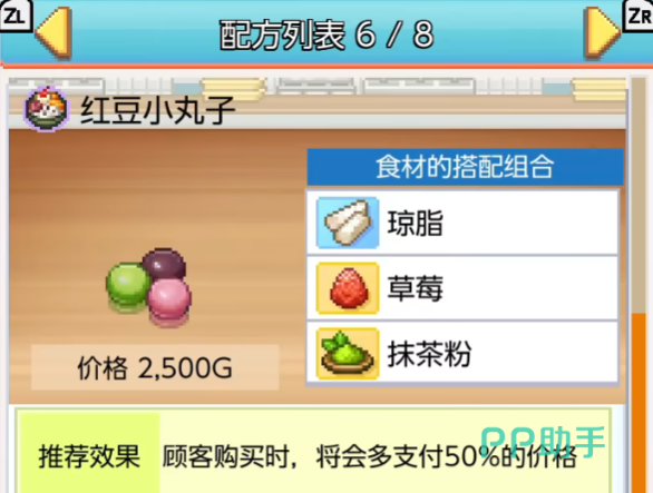 首先,抹茶粉可以与其他材料合成新的食物。例如大家所喜爱的红豆小丸子,便是由抹茶粉、草莓以及琼脂所制作成。售价为2500金币,特别是顾客购买时,还会多获得50%的金钱,让你获得源源不断的经济收入。