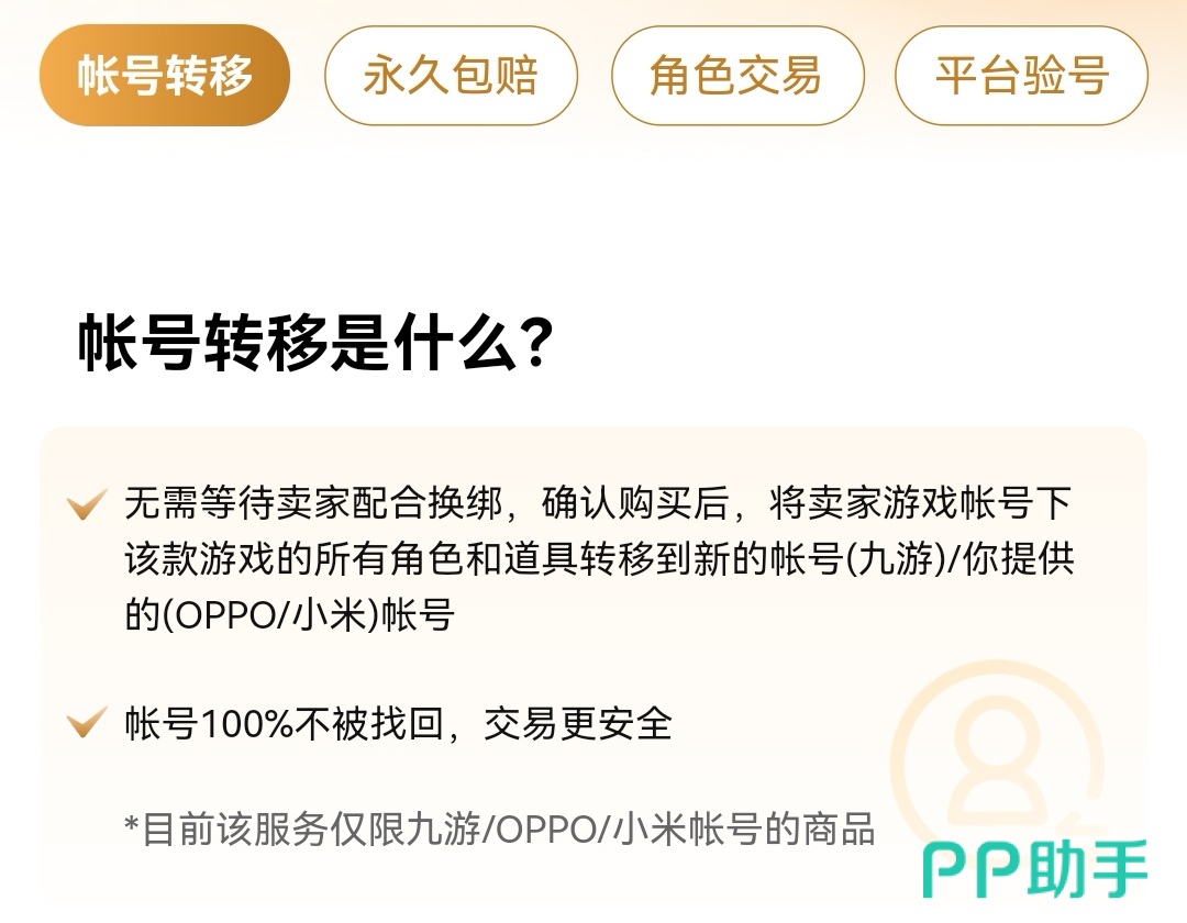 有很多玩家不知道这个功能是多安全,一般的账号交易完成之后买家也要整日提心吊胆的担心被找回。但是如果走交易猫和指定的官方渠道平台合作的账号转移服务,就相当于把卖家的所有弹弹堂大冒险账号道具,武器以及其他所有的数据转移到买家所提供的账号上,不存在找回问题。适合绝大多数的OPPO、九游玩家。