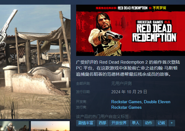 而游戏名的原版英文是Red Dead Redemption,需要输入这几个词时商店才会跳出搜索结果。这个时候会出现两个,我们选择不带2的那个便会自动跳转到救赎的详情页面,跳转成功后我们便可以查看这部作品的具体内容以及相关配置要求等等信息了。