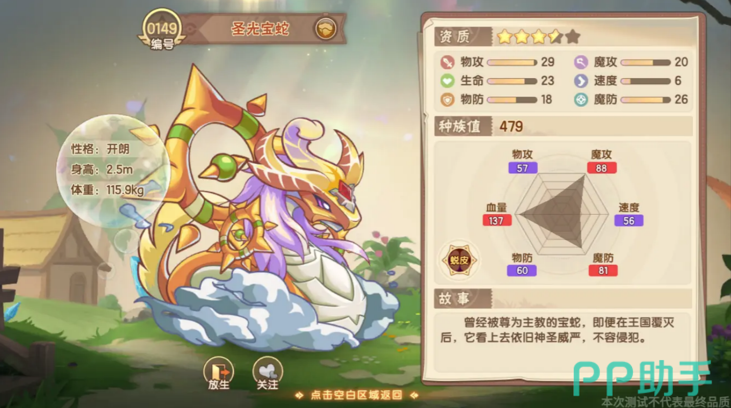 以上就是西普大陆手游主教之契介绍的内容了。我们可以看到主教之契在西普大陆中的重要性与独特用途。它不仅是捕捉稀有精灵的关键道具,还能反复为玩家开启挑战圣光宝蛇的机会。这个道具的获取需要玩家的耐心与技巧,但它所带来的丰厚回报也是值得的。希望每位驯宠师在掌握这篇攻略后,能更轻松地捕捉到属于自己的圣光宝蛇。