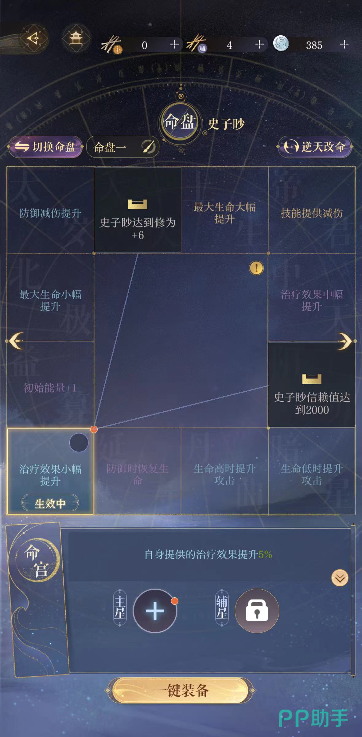 史子眇的命盘比较推荐洗到的就是三金,也就是治疗效果大幅提升、最大生命大幅提升、技能提供减伤。当然,洗什么命盘也需要根据当下对密探的需求是什么,比如需要史子眇快速放技能,那也可以洗初始能量加一。