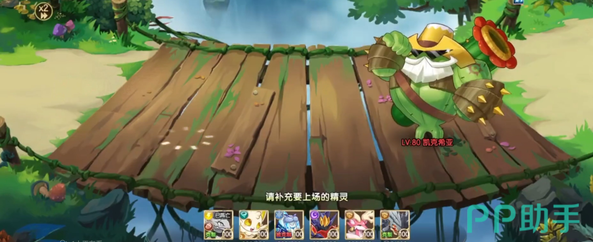 钢系精灵虽然能够克制该草系BOSS,但是玩家要注意技能的使用,其中睡眠技能就是一个需要注意的技能,如果能够生效的话,战斗的胜利几率可以大大提升,而且能速战速决。此外,玩家若是没有钢系精灵的话,雷系精灵也是个不错的选择,例如:沙拉丁与闪电龙蜥,这些雷系精灵在与凯克西亚作战的时候,是很容易打出暴击伤害,可以快速解决掉对手。