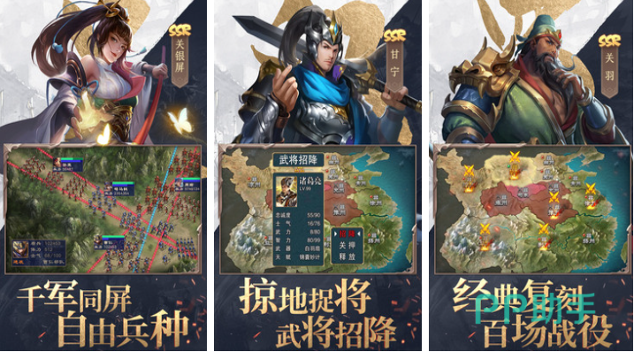 这款战略版的三国主题游戏就支持玩家自由带兵打仗,百分百还原的三国历史和超多古代文化都在这款游戏中得以展现,游戏剧情饱满、人设鲜明让很多三国游戏爱好者趋之若鹜,带领上万人的军队打仗的过程激情澎湃给人当将军的快感,新加入的卡牌元素可以让玩家抽卡获取各种各样的武将,高清写实的画面效果为玩家复刻了真实古战场。