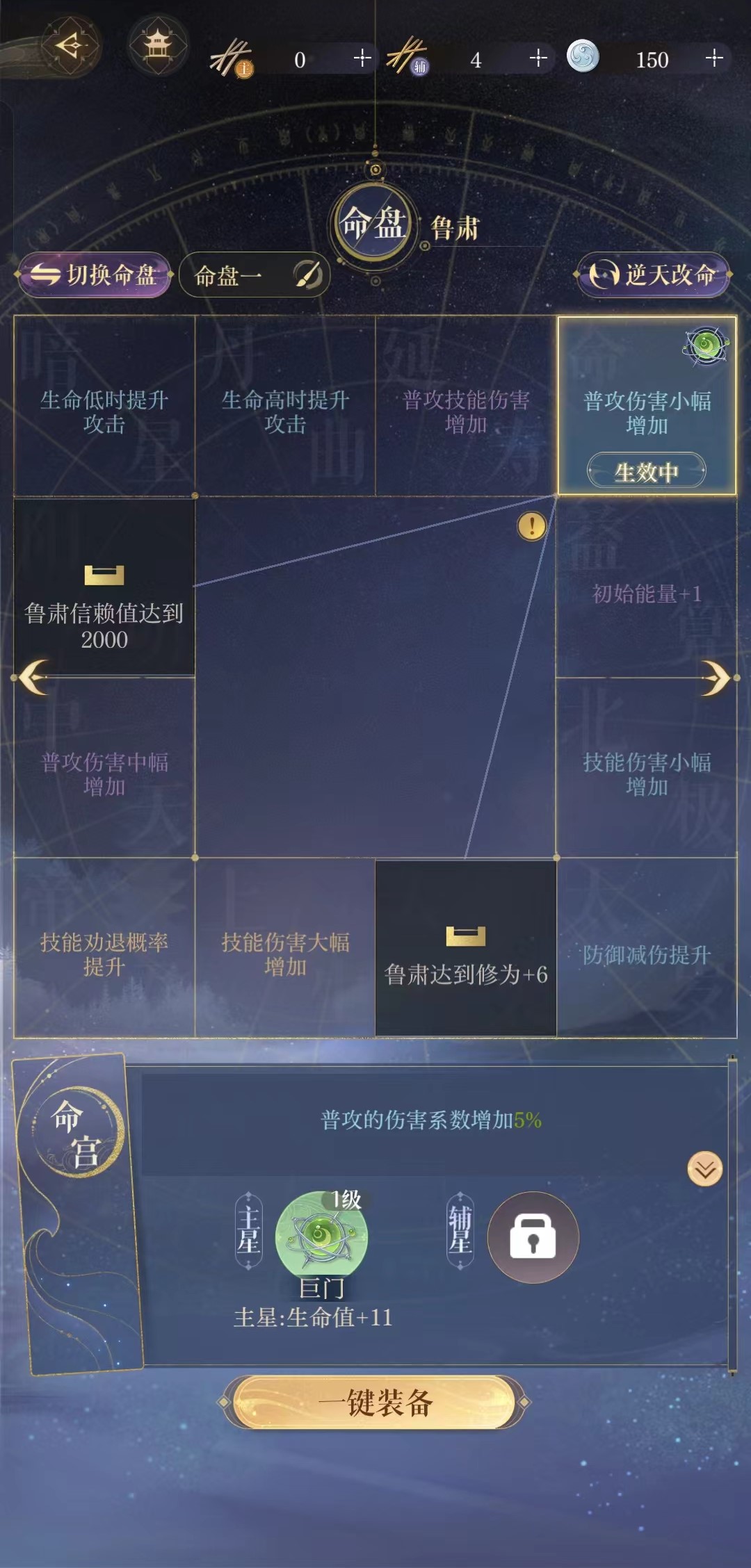 除此之外,我们可以看到鲁肃命盘的第一个词条是与攻击相关的,所以我们在选择星石的时候应该优先选择攻击相关的星石。星石需要等玩家等级到达20级之后通过观星才能获取,还没达到20级的广陵王们如果遇到卡关也可以试试优先提升角色等级哦!