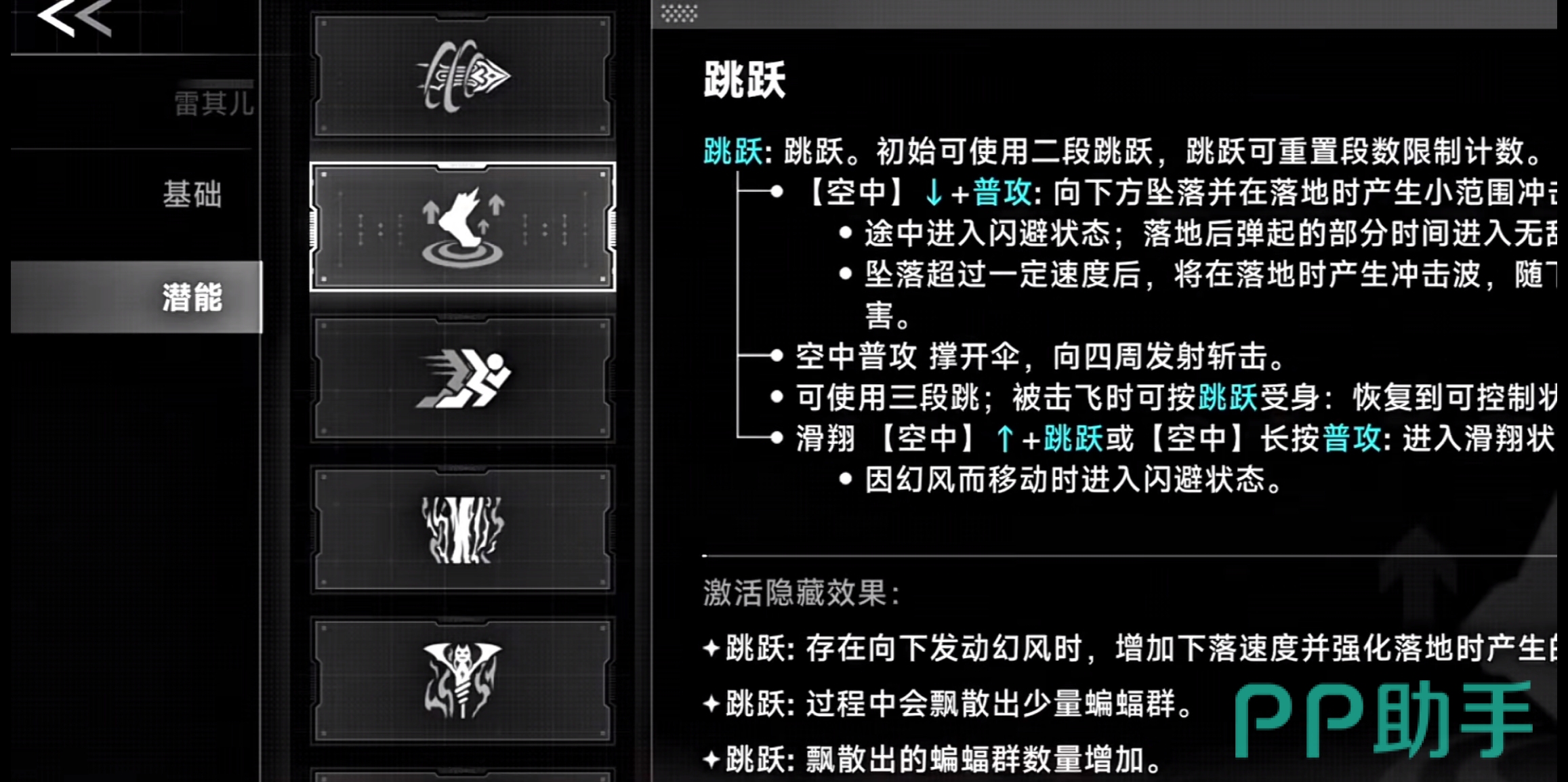 而想要触发游戏内的隐藏效果,这就要提及混沌效应的潜能机制。这款游戏最大的亮点在于自己独有的潜能机制。在这个机制中最简单的普攻跳跃和闪避都分成了好几段操作,通过分配潜能点可以提升他们的段数,比如说潜能点主要分配给普攻加闪避,再获取相关buff就形成了普攻闪避流,普攻跳跃流也是同理,这就是为什么别人在普通攻击的时候可以跳一下,这种隐藏效果的激活就是需要潜能点分配给特定的操作。