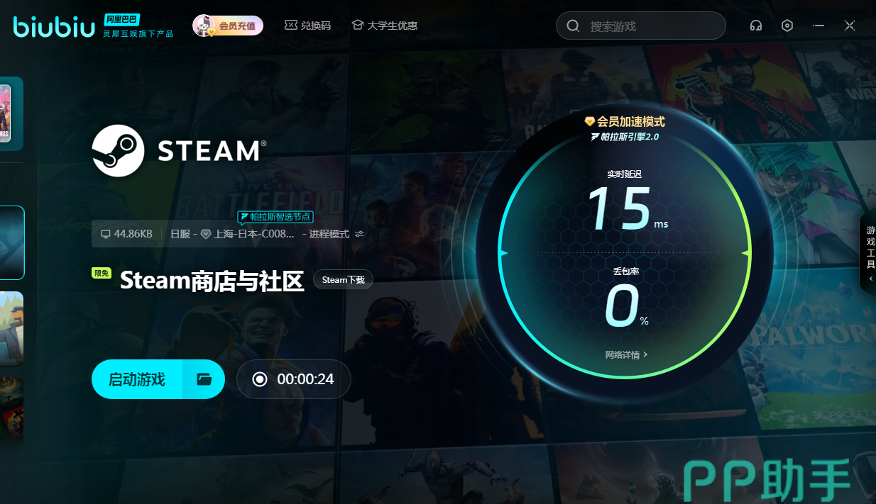 biubiu的搜索功能非常便捷,只需输入游戏名称或相关关键词,就能快速找到游戏的加速页面,大家直接搜索steam即可。而且,biubiu提供多种加速体验方式,用户可以轻松找到对应的加速服务,覆盖面非常全面。经过加速服务优化后的网络非常稳定,延迟率始终保持较低水平,玩家可以放心进行任务。在这个过程中,不会发生闪退问题,而且由于帧率的提升,战斗动作更加流畅,整体战斗手感有了显著提升。