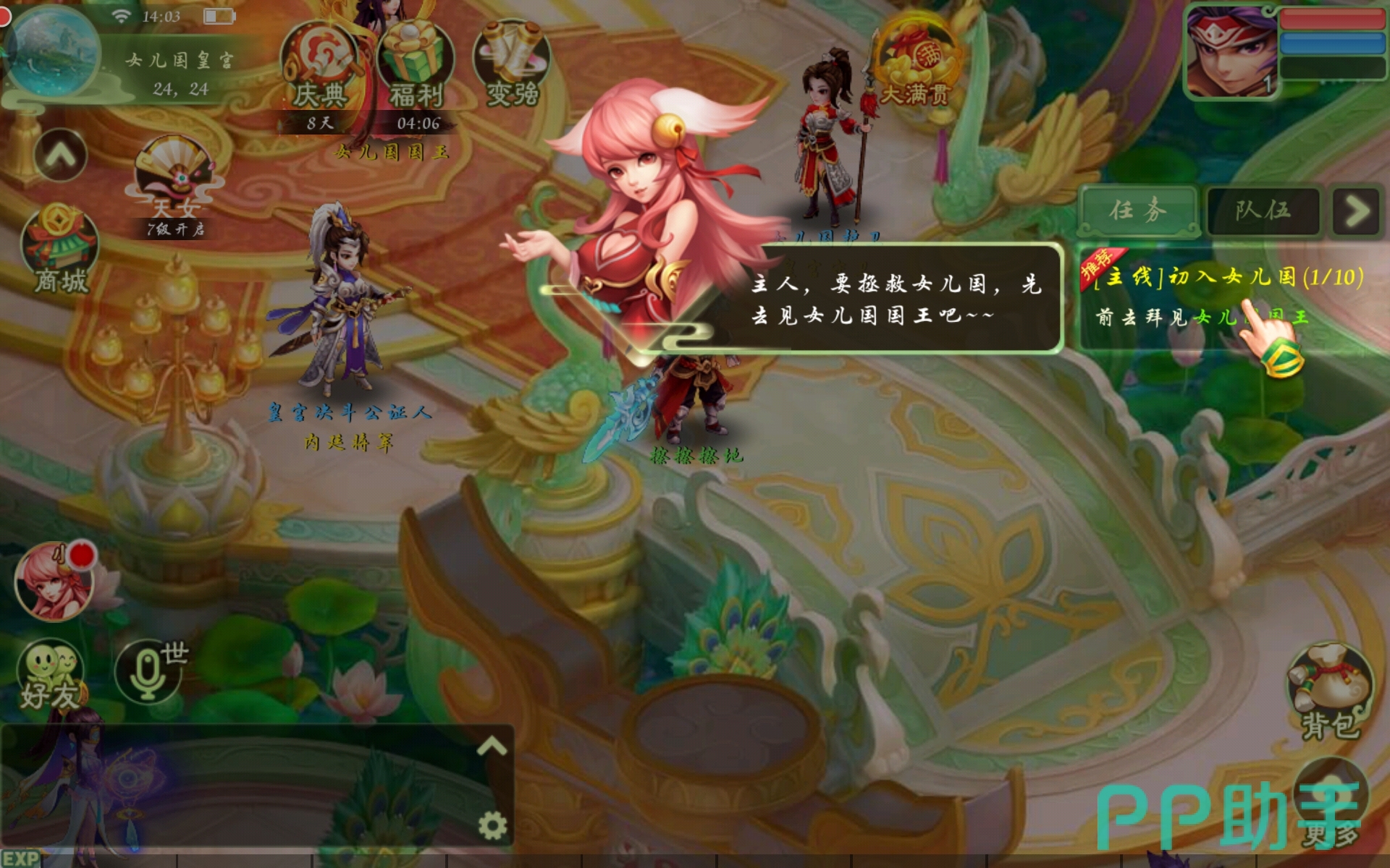 选择好任务,进入游戏页面后。玩家可以在屏幕的右侧查看需要完成的主线任务,通过点击主线任务就可以自动寻路啦。