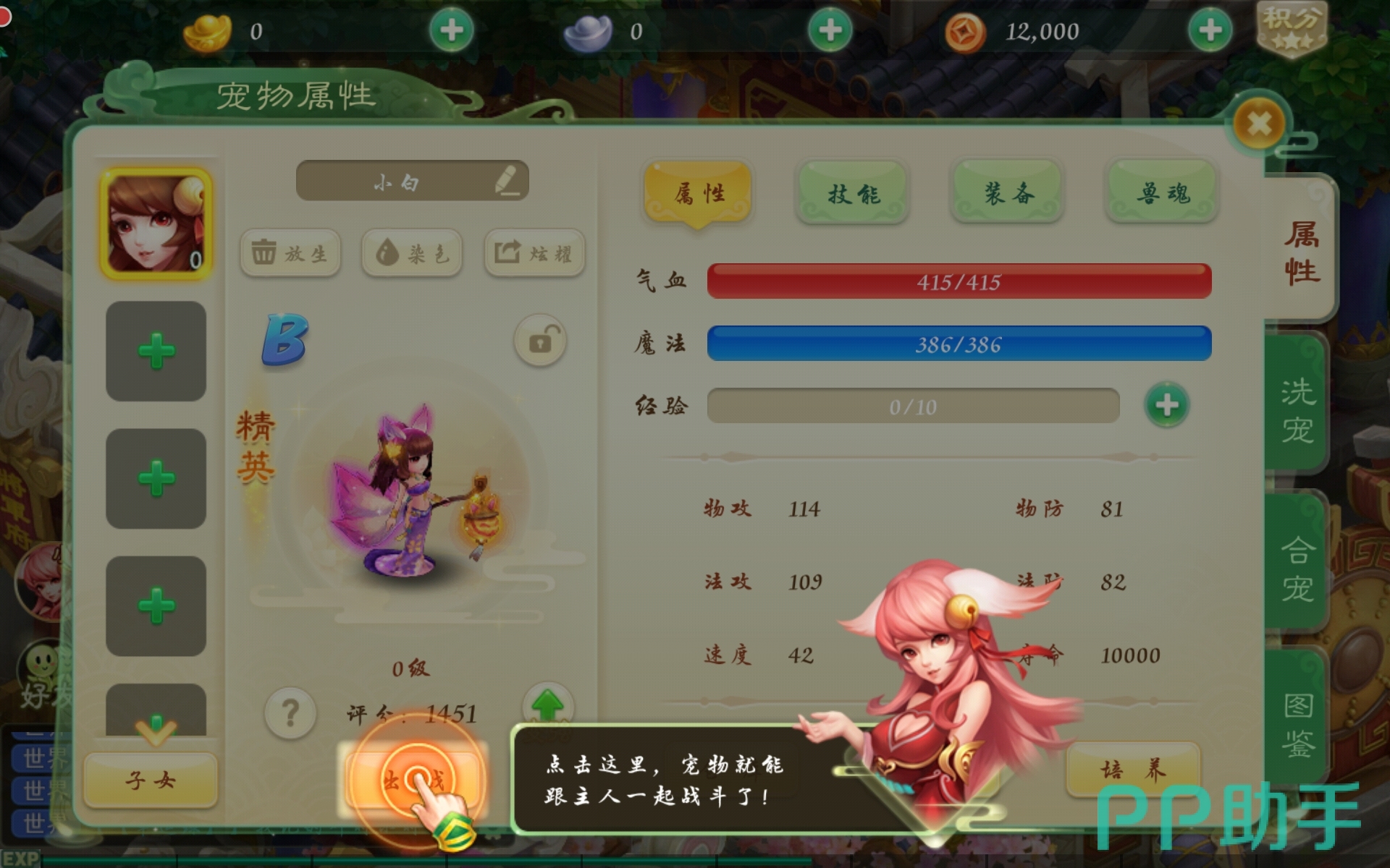 玩家在完成任务的过程中,会获得一些游戏中的资源以及陪伴战斗的宠物。点击自身头像旁边的加号,可以打开宠物面板,让宠物出战!
