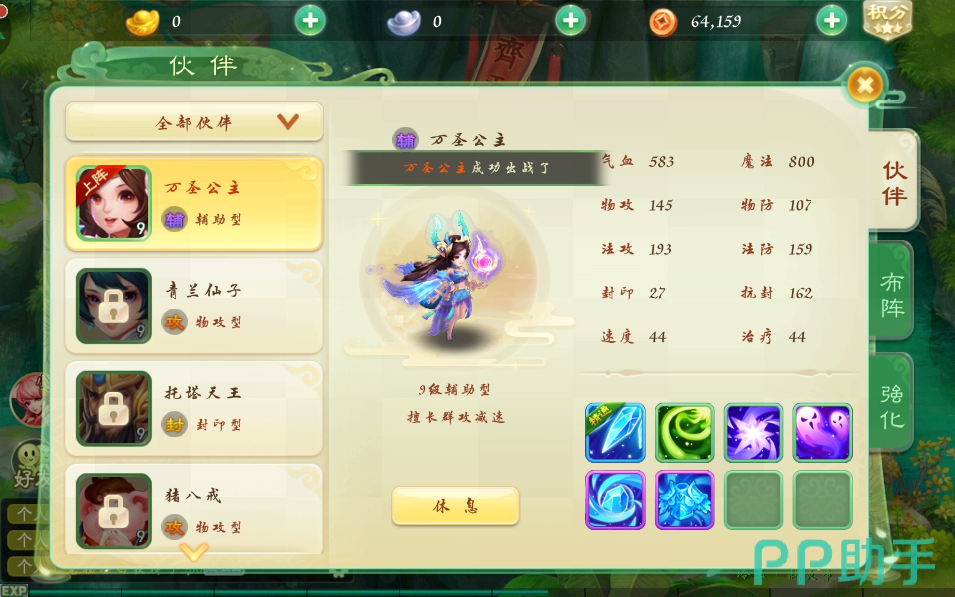 在伙伴页面,玩家可以招募更多的伙伴。对于已拥有的伙伴玩家可以在此页面更换出战伙伴,变换战斗队形。并且在人物30级之后,就可以对伙伴进行强化了。